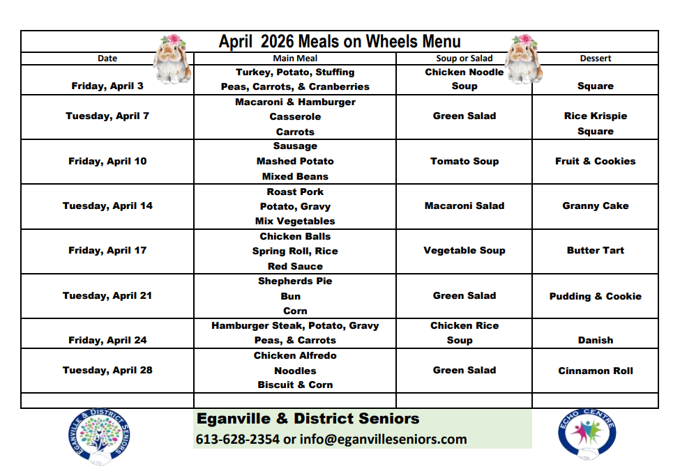 The Eganville & District Seniors Association (EDS) has partnered with Fairfields, to deliver meals every Tuesday and Friday to clients in the surrounding area.